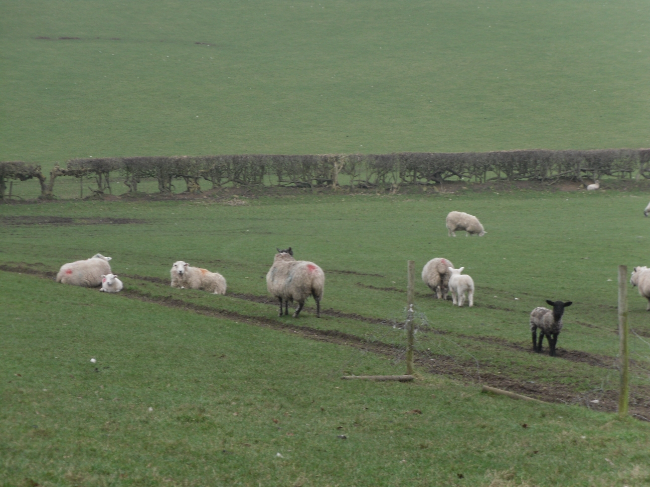 My route took me along the Lancaster canal (contributing no miles to my canal adventure), starting at the bridge near my old halls of residence where the empty 3 litre white cider bottles suggest that it’s still tramps’ corner (or students, who knows) and down the towpath until, in the distance, I could see some sheep in a field. Wildly,Ā I changed course down the lonely footpath that may or may not have lead to my first lamb-spotting of the season. Luckily it did and I saw these little beauties, who stared at me rather curiously.