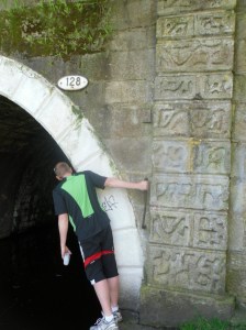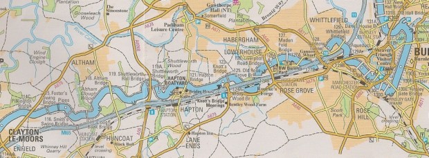 The next bit of excitement was the Gannow Tunnel – 500 metres of tunnel that demonstrates the canal builders approach that if we can’t go over it, we’ll have to go through it. Unfortunately the tunnel runs under a massive intersection of roads and Junction 10 of the M65. The result of this was a certain amount of bewildered wandering as we tried to get back down to the canal.