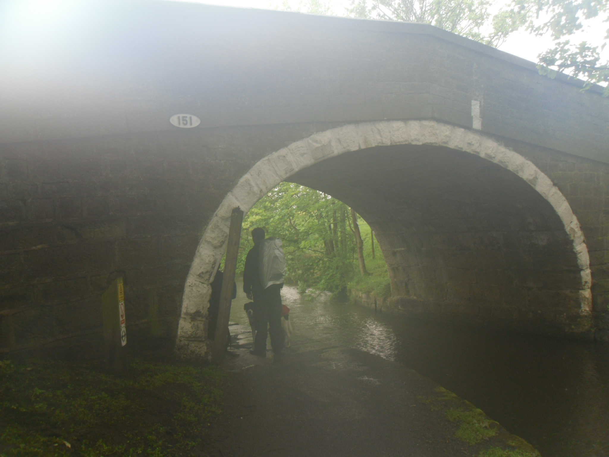We awoke to the same sound as the previous day, only louder. Kit on, banana eaten, tent packed up to be off site by 11, in the car, windscreen wipers on… The previous day, Ginge and I had discussed whether he wants to run the entire length of the canal. So far he’s done all but a few miles with me and I think that it’s mad that he’ll end up running nearly but not quite all of it. He says that it’s my daft idea and he’s just there for moral support, safety and logistical reasons. Normally I would argue, but it was peeing down and I could either run a pointless 5 miles in a 10 mile there and back, or be dropped off and run 5 miles to meet Ginge running the other way. No contest. I was dropped off at Bridge 162, which wasn’t half as interesting as the double arched bridge, Bridge 161.