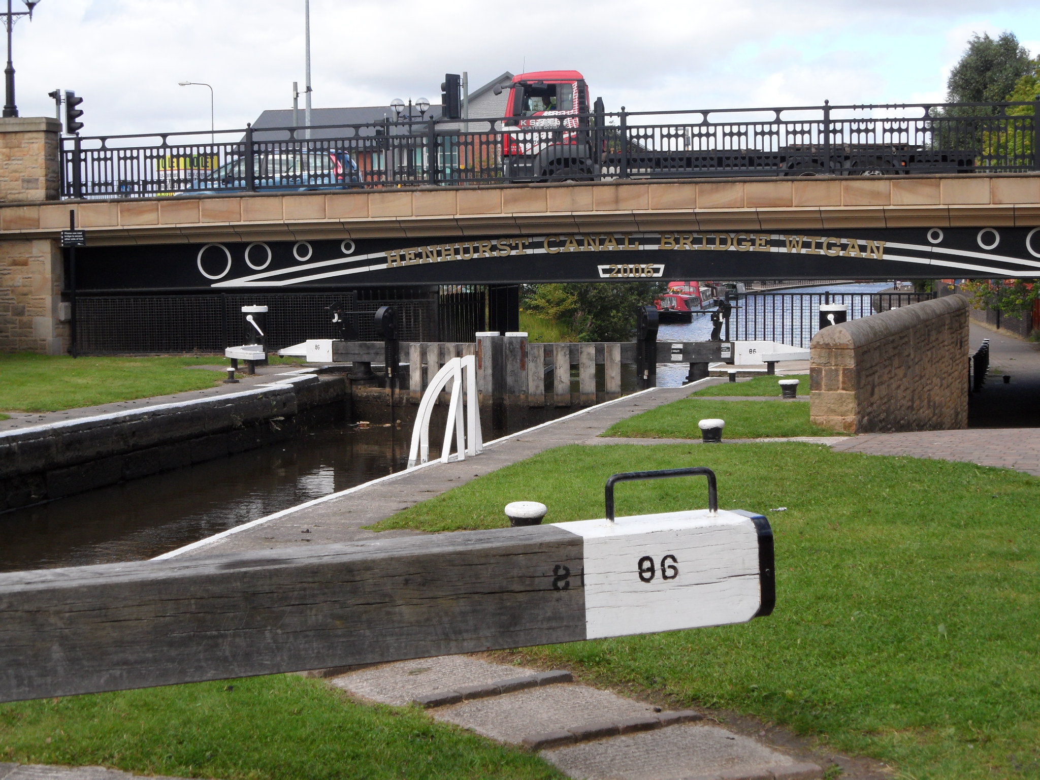 The route takes you past the end of the Leigh Branch canal (linking the Leeds-Liverpool to the Bridgewater canal).
