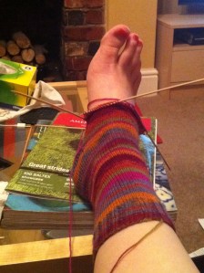 It’s that time of year again when we all look back, reflect on the previous twelve months, feel slightly inadequate and make all sorts of rash promises for the New Year. Going back to my first post of Janathon 2011, I had been a bit of a slacker on the running front and mostly reflected on my knitting goals for 2010. Most of these have been on a rolling programme since 2009. The beautiful but barely started throw remains beautiful, but barely started, my wool stash has grown and remains chaotic, the felted bag hasn’t been knitted, let alone felted…. I have however, finally, started to knit a sock.