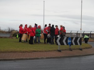 I was cold enough to consider joining in with the warm up. At my only previous race where there has been a pre-race warm up (Liverpool Women’s 10K) I avoided it because it looked like it required far too much coordination for my paltry skills. Today I muttered darkly about not being here to jump up and down, I like running and if I wanted to do jumping, I would go to…jumping practise (I said I was grumpy). My grudging participation was rewarded by the friendliest, most laid back, random warm up (given that the chap who did it didn’t look like the ‘Camilla’ who had previously been introduced, I suspect he was a last minute replacement) that ended up with him accepting heckled exercise suggestions from the crowd.