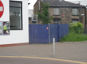 After all the socialising and pigeon paparazzi, I thought I better head back to Ginge whose eagle eyes had spotted a blue fence (another of Follystone‘s) at the railway station.