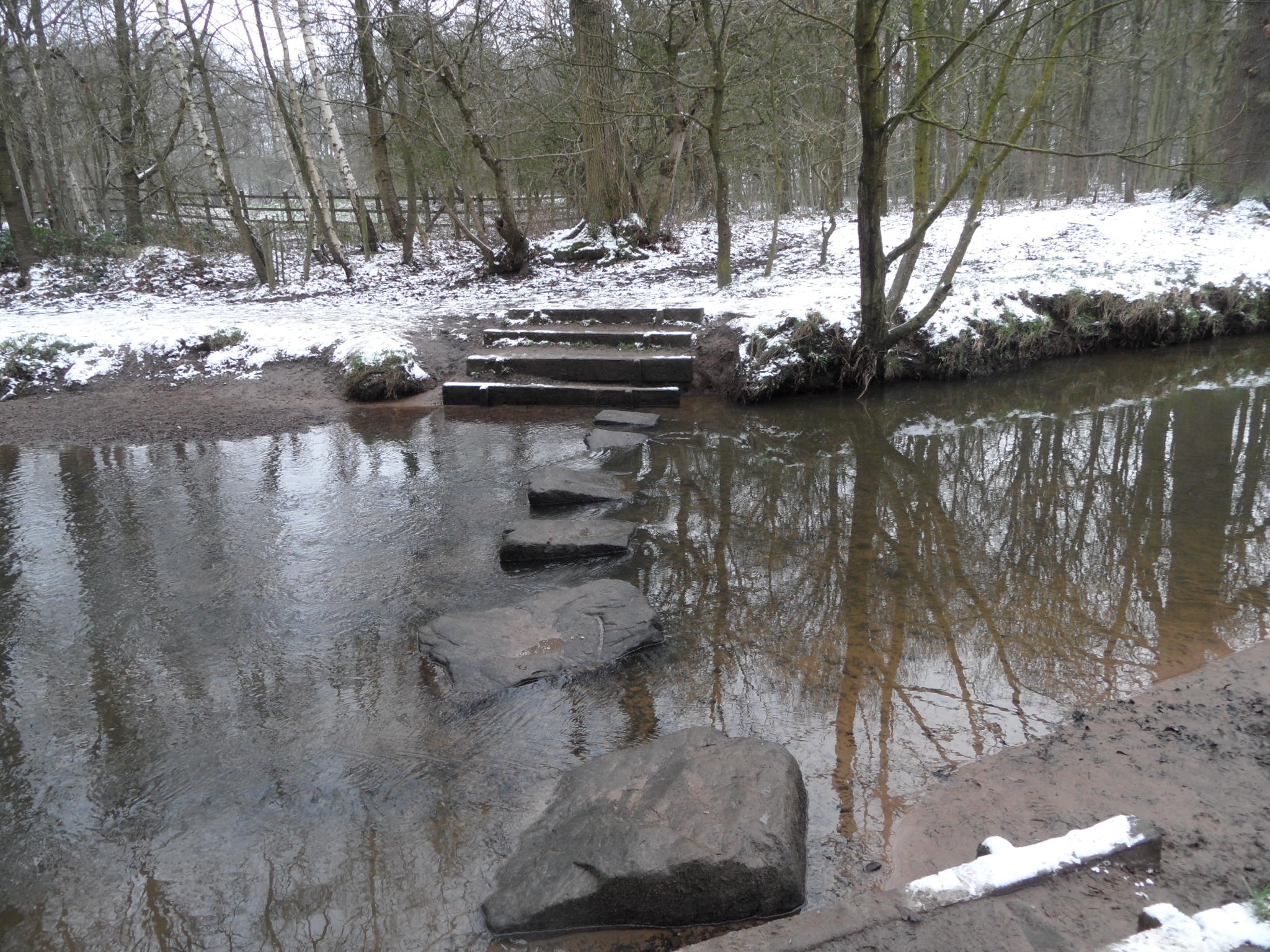 SAM_2123After misjudging a path I went bounding off into the undergrowth and was crossing my fingers that I would be able to cross the river without having to do an embarrassing U-turn… When I did reach a crossing point, my heart sank to see stepping-stones. Those of you who know me will now that this was a potentially cold and wet disaster in the making.