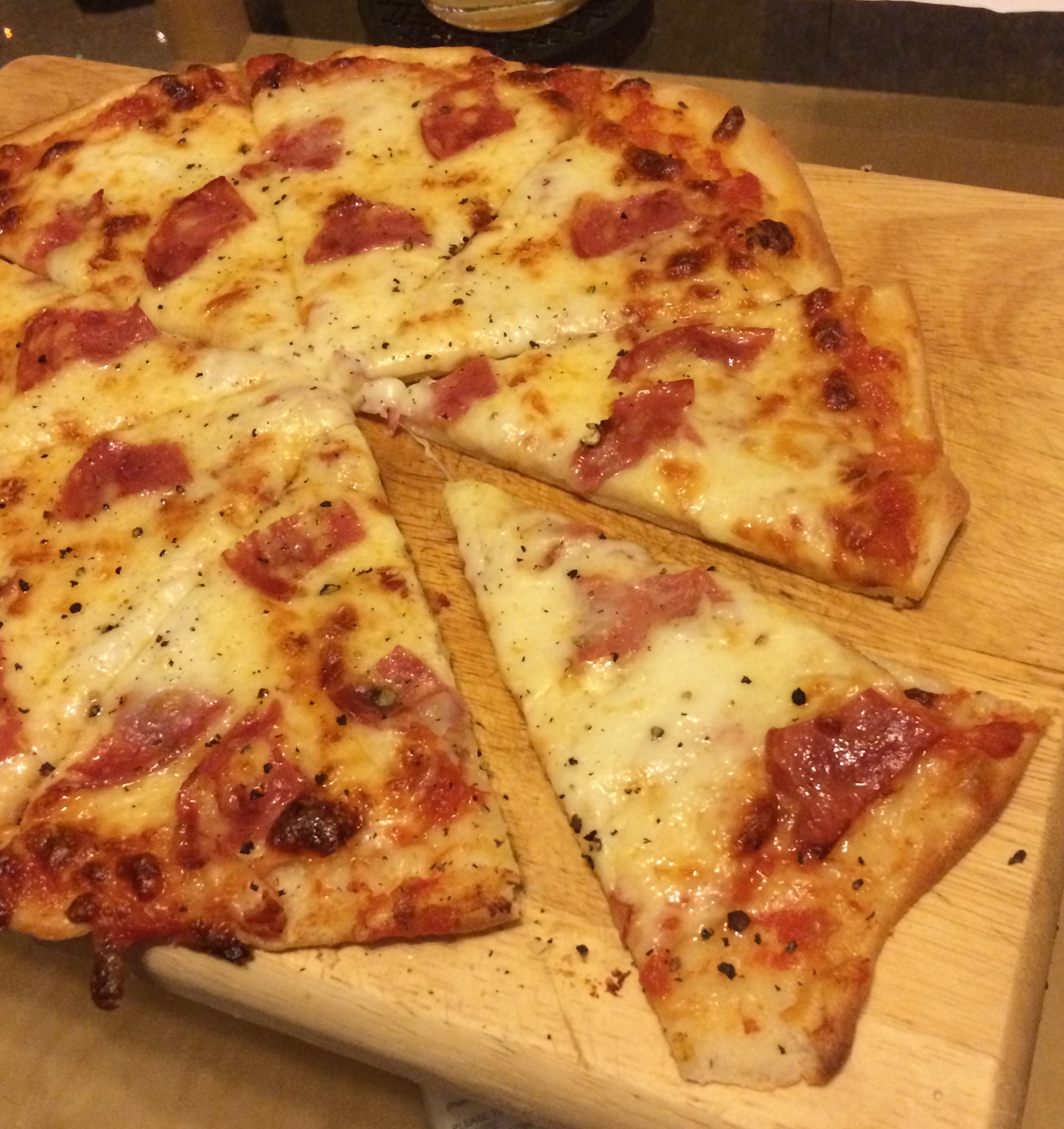 Ahh, pizza. I got a pizza stone for Ian this Christmas… Thinking I will benefit too hehe