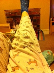 It was wet, there was housework to be done (well Ginge had to deal with the twelfth night aftermath of choosing a ten foot tall Christmas tree) and I spent much of today in fleecy pyjamas. To be honest, the day took a while to get going because I’m finding that I’m completely knackered in the mornings at the moment. Before Mini-Ginge came along, I was an early bird – I consider morning to be the best part of the day (and am convinced that the day is pretty much over by about two in the afternoon). At the moment, I’m getting up to do a 4/5am feed and feeling quite awake afterwards. I keep thinking about getting up and doing stuff, but choose to get another couple of hours shut-eye before his next breakfast. When I wake up for this feed, I’m much sleepier than I was pre-dawn. It is annoying.